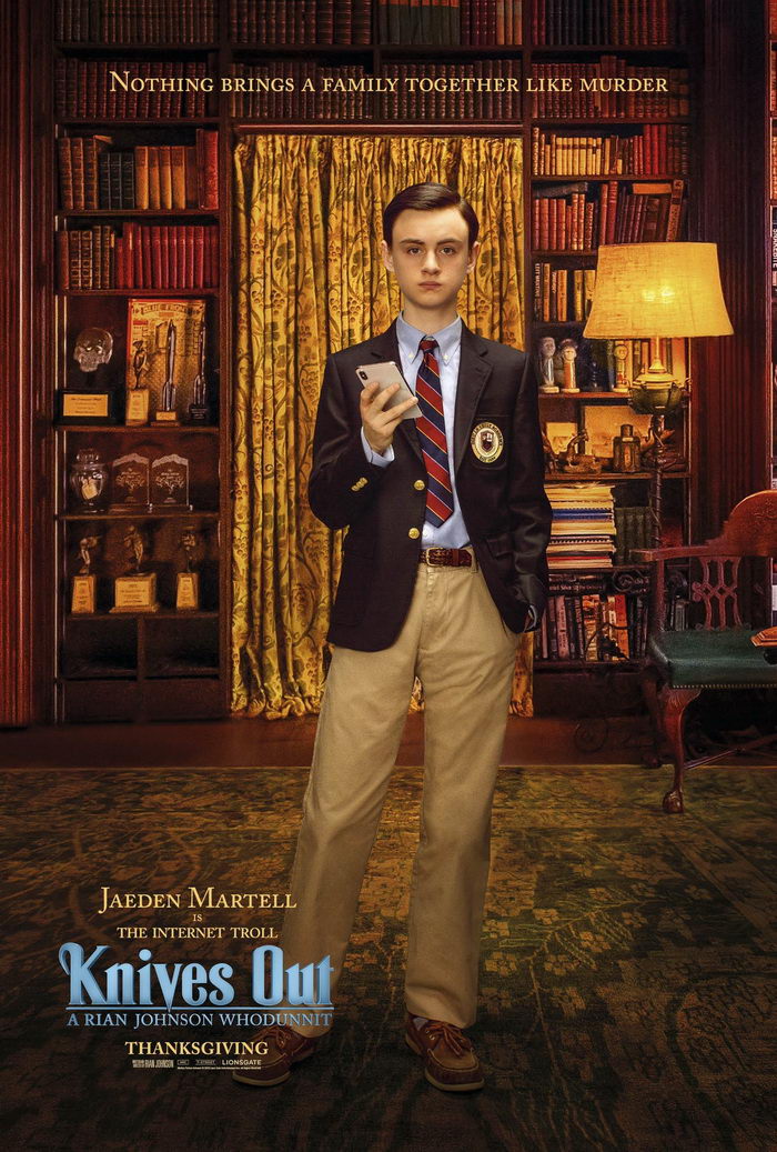 Студия Lionsgate опубликовала персонажные постеры звездного детективного триллера «Ножи наголо» («Knives Out») от режиссера и сценариста Райана Джонсона («Звёздные войны»).